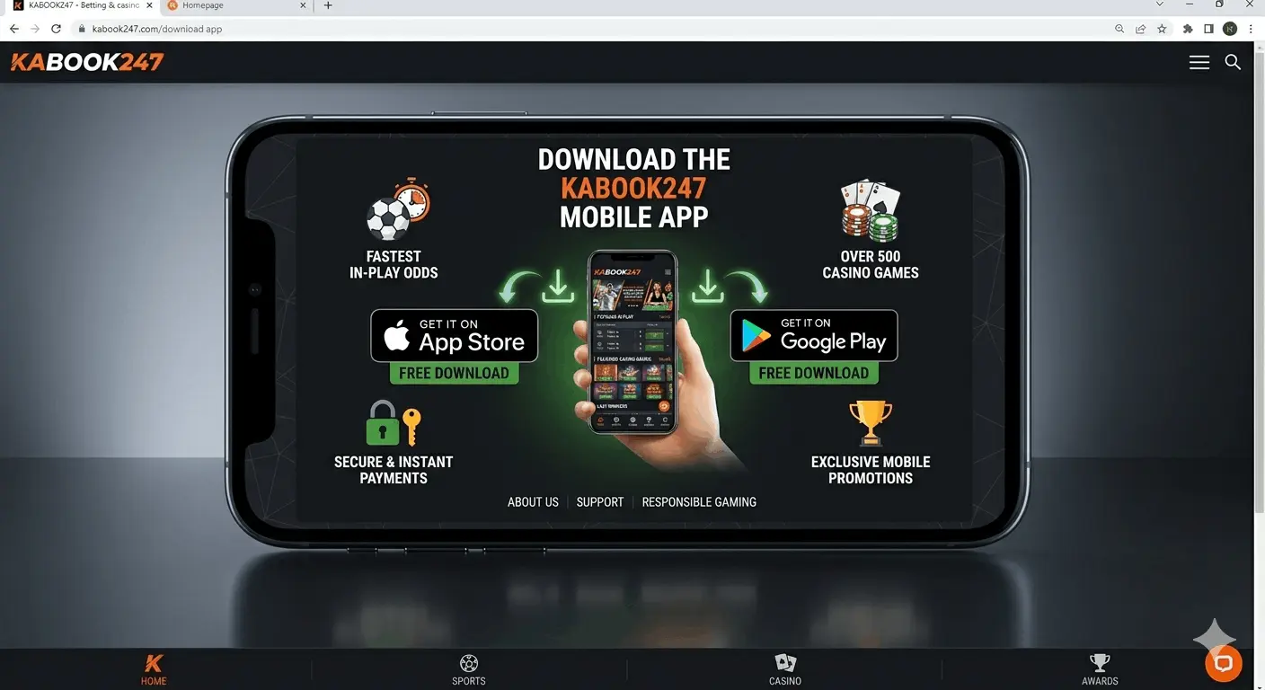To avail all the features and the benefits of the Kabook bet in, users must download the app. The app can be downloaded on both Android and iOS devices for free. It takes very little work to download this program; just follow the directions.