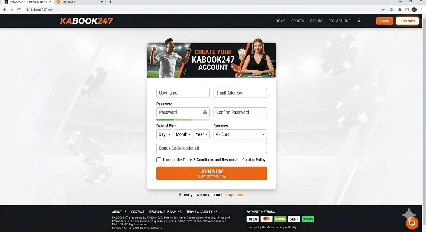 Once done, click on the Kabook. bet sign-up button and begin exploring your account.